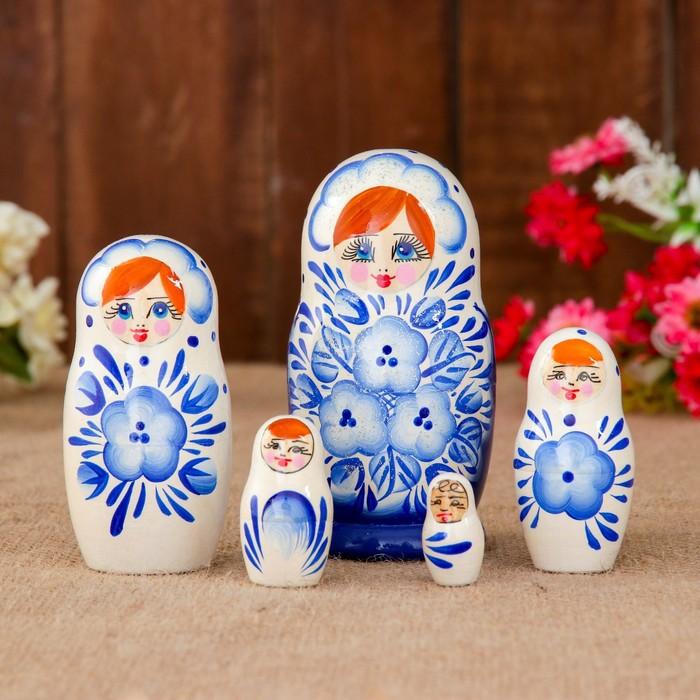 Матрёшка «Гжель», бело-голубой платок, 5 кукольная, 10,5 см