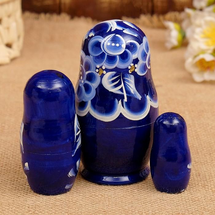 Матрёшка «Марина», сине-белое платье, 3 кукольная. 9-11 см