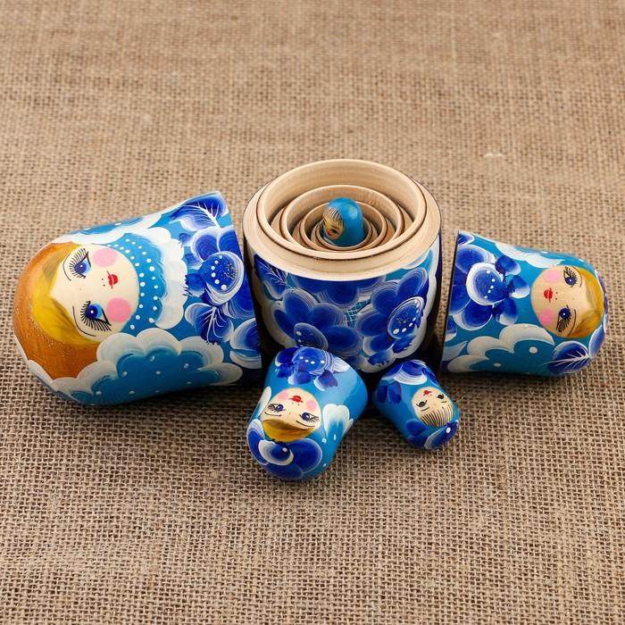 Матрёшка «Цветы», голубой платок, 5 кукольная, 15 см