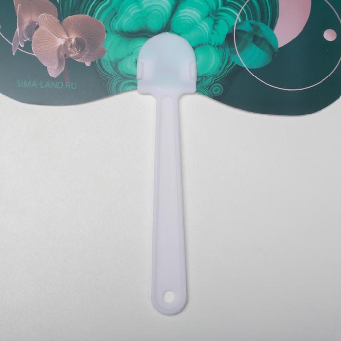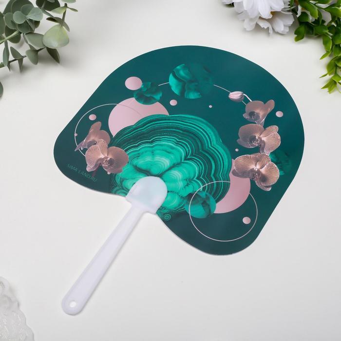 Веер-опахало "Малахит и золотая орхидея" 21х13 см