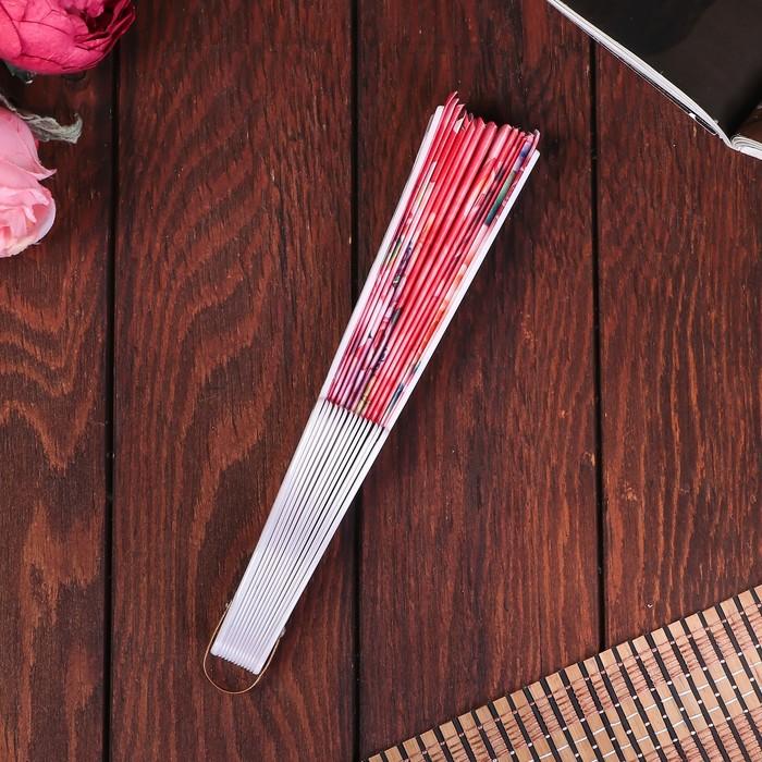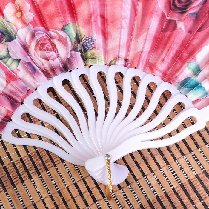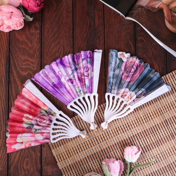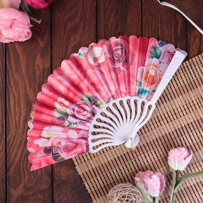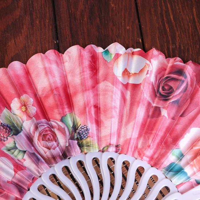 Веер пластик, текстиль "Крупные розы" изгиб МИКС 23см