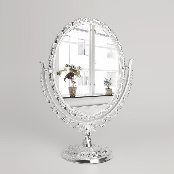 Зеркало настольное, двустороннее, с увеличением, зеркальная поверхность 9 × 12 см, цвет серебристый