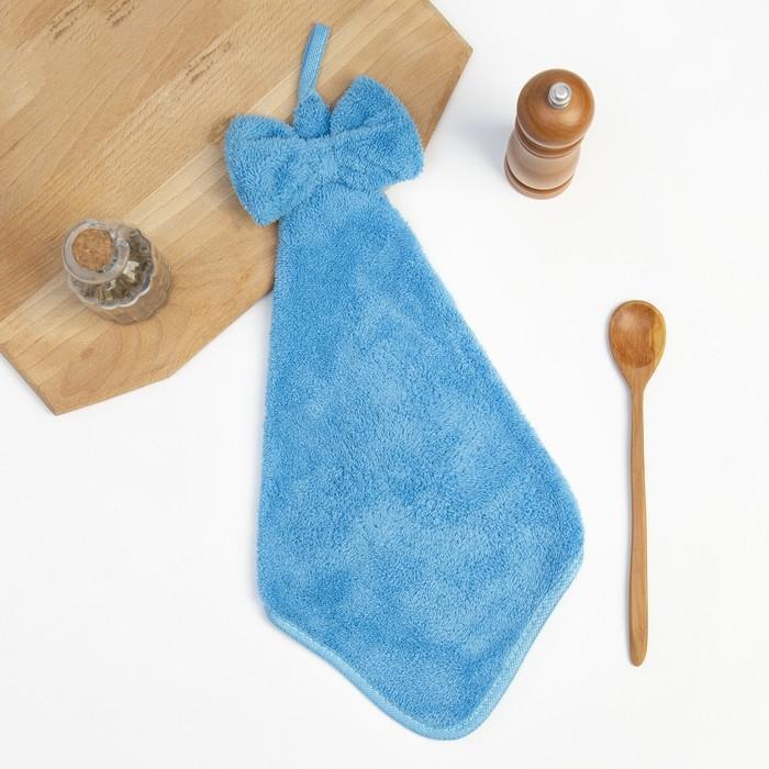 Кухонное полотенце Доляна "Бантик"цв.синий 28х40 см, микрофибра, 100% п/э