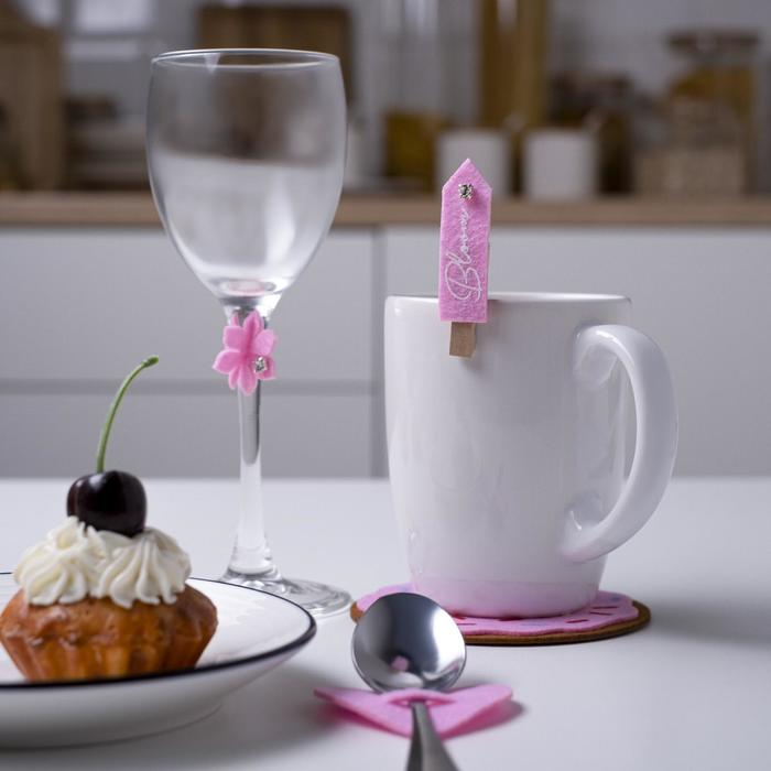 Декор для бокала "Цветы" 4 шт, 7,3 х 3 см, 100% п/э, фетр