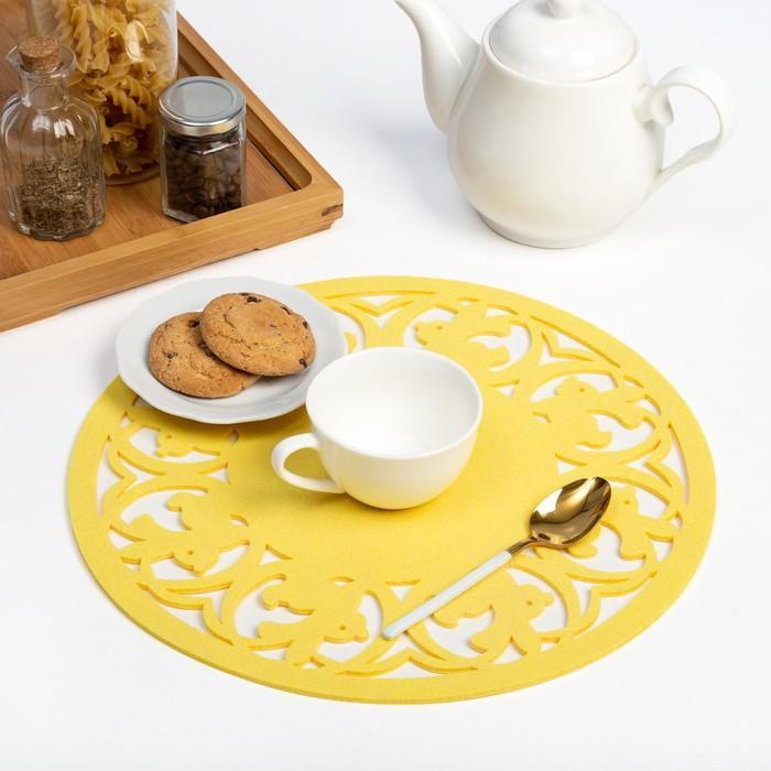 Салфетка декоративная Доляна"Пасха" цвет желтый,d 30 см, 100% п/э, фетр