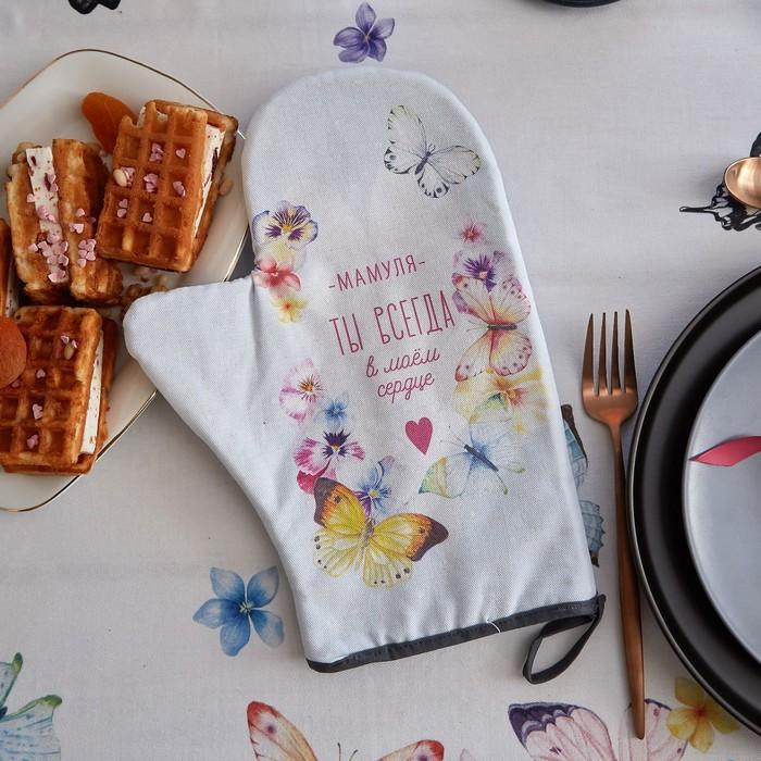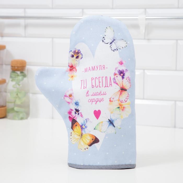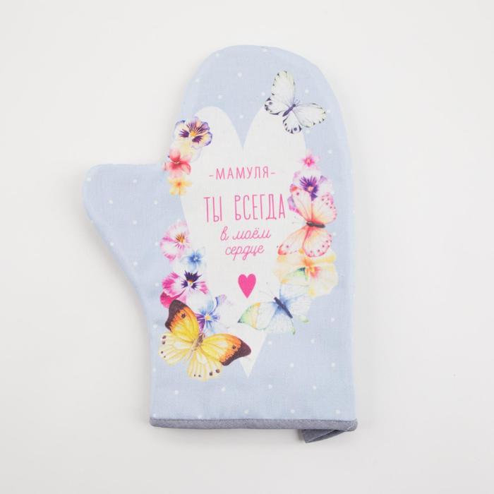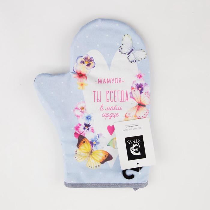 Варежка-прихватка "Мамуля" 20х28см,саржа, 100% х/л, ватин 250г/м2