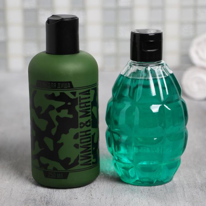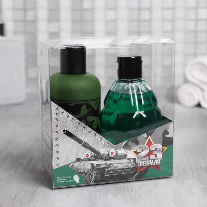 Набор "23 Февраля танк" гель для душа фляга, шампунь граната 250 мл аромат мята и цитрус