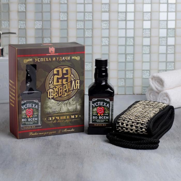 Набор "23 Февраля" виски гель для душа 250 мл аромат бергамот и пачули, мочалка