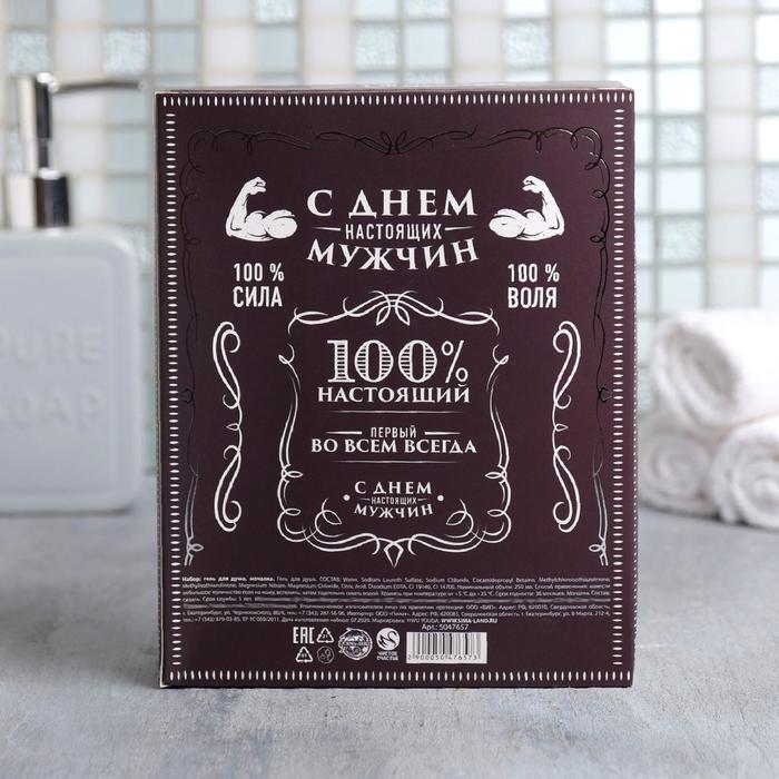 Набор "Крутому мужику" виски гель для душа 250 мл аромат бергамот и пачули, мочалка