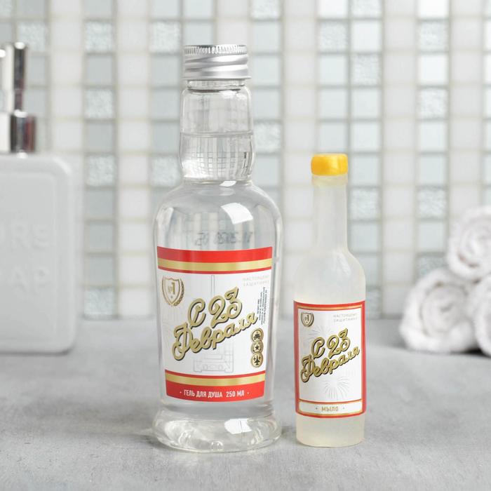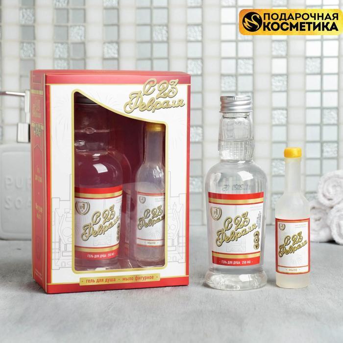 Набор "С 23 Февраля" гель для душа водка 250 мл аромат мужского парфюма, фигурное мыло