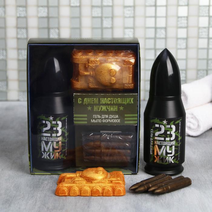 Набор "С днем настоящих мужчин" пуля гель для душа 200 мл аромат парфюма, фигурное мыло