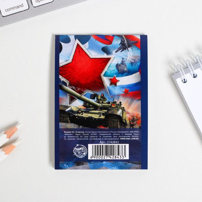 Блокнот в клетку "Настоящему защитнику!", на скрепке, А7, 16 листов
