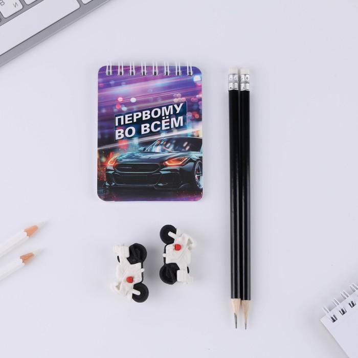 Канцелярский набор «Самому крутому», карандаши 2 шт, ластики 2 шт, блокнот