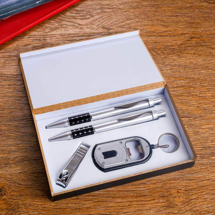 Набор подарочный 4в1 (2 ручки, кусачки, брелок-открывалка с фонариком)