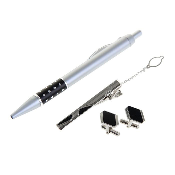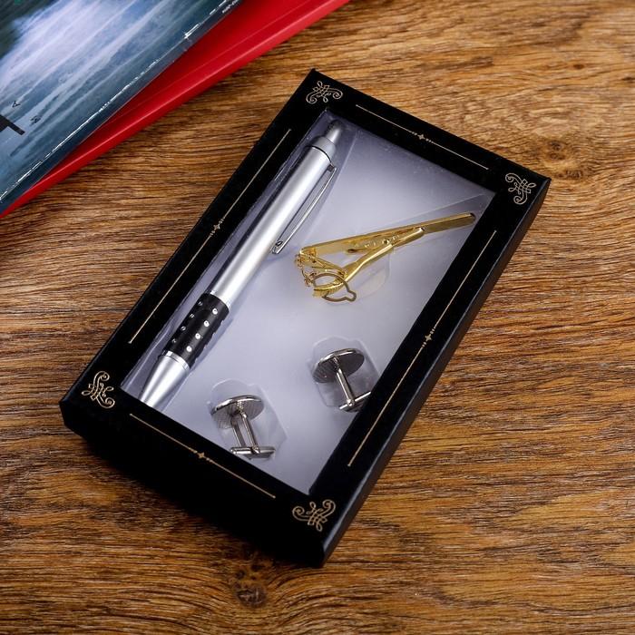 Набор подарочный 4в1 (ручка, заколка для галстука, 2 запонки) микс