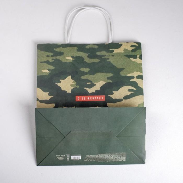 Пакет подарочный крафт «С 23 февраля», 32 х 28 х 15 см