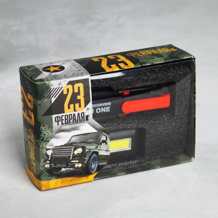 Набор аксессуаров для автомобиля «23 февраля» 2 в 1 (набор мульти-инструментов и фонарик на голову)