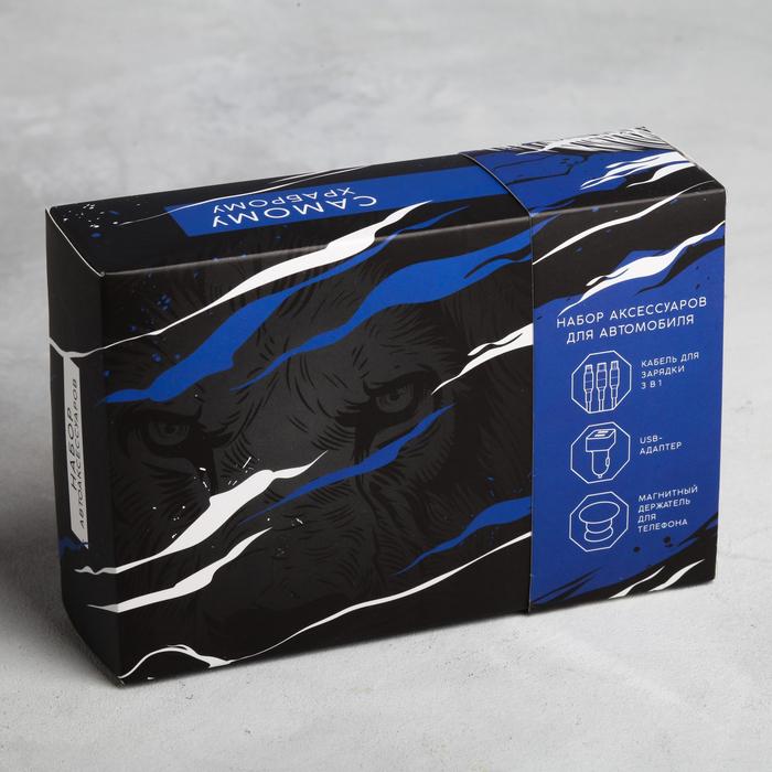 Набор аксессуаров для автомобиля «Характер и сила» 3 в 1 (магнитный держатель, USB-адаптер, кабель для зарядки)
