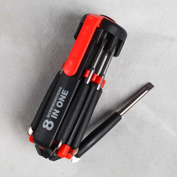 Там есть всё необходимое для современного мужчины, чтобы вовремя устранить неполадки в доме или в пути: набор мультиинструментов (8 в 1) с подсветкой. Инструменты изготовлены из высокопрочного металла.