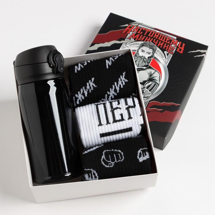 ----Подарочный набор термос и носки 3 пары KAFTAN "Настоящему мужчине", р. 41-44 (27-29 см)