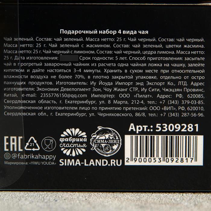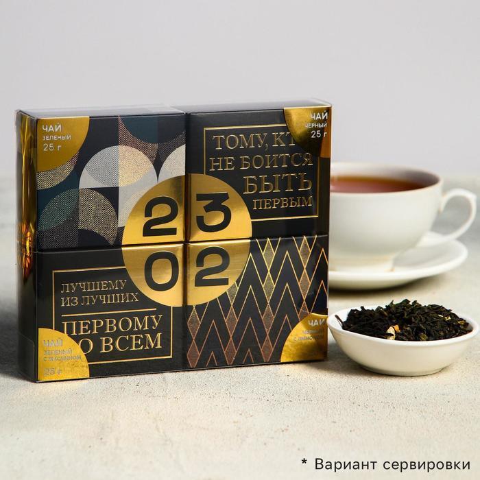 Подарочный набор 4 вида чая «23.02», чай чёрный, зелёный, чёрный с лимоном, зелёный с жасмином, 25 г. х 4 шт.