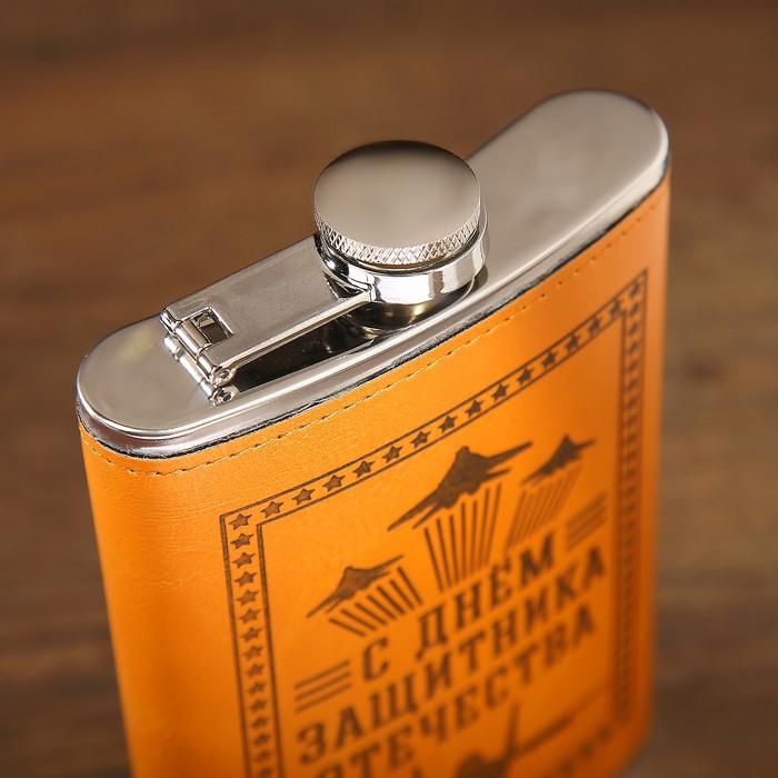 Фляжка 270 мл "С днём защитника Отечества", светло-коричневая, 9.5 х 2 х 14.5 см