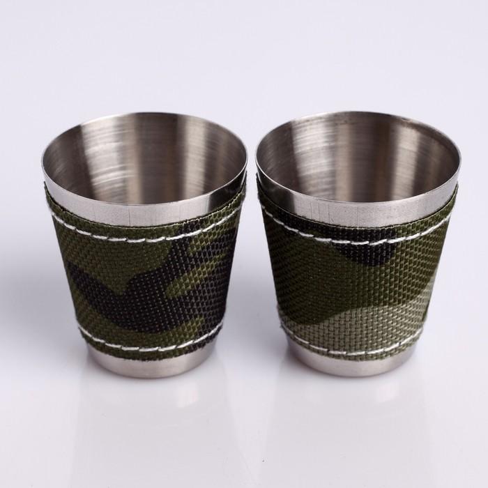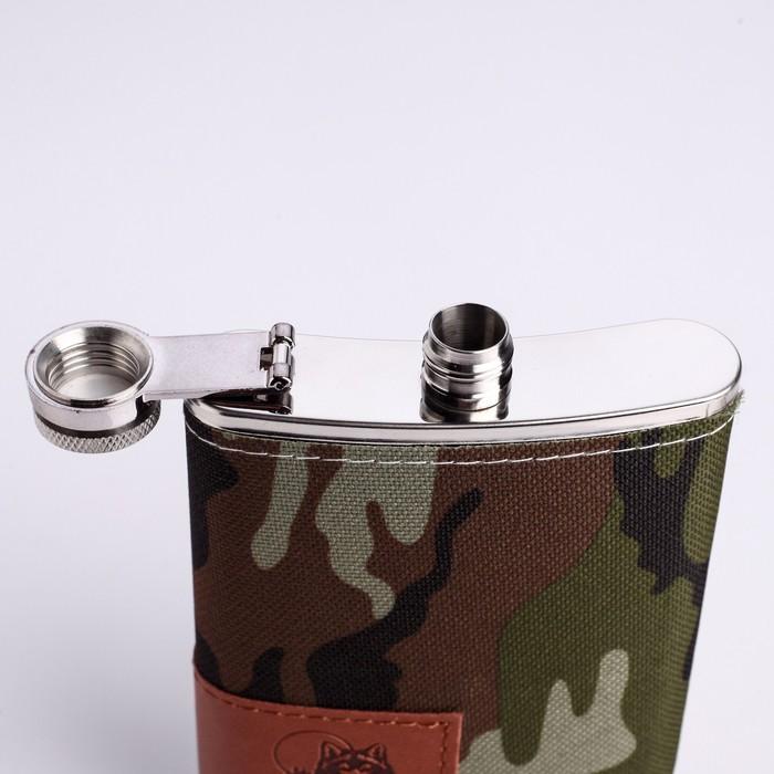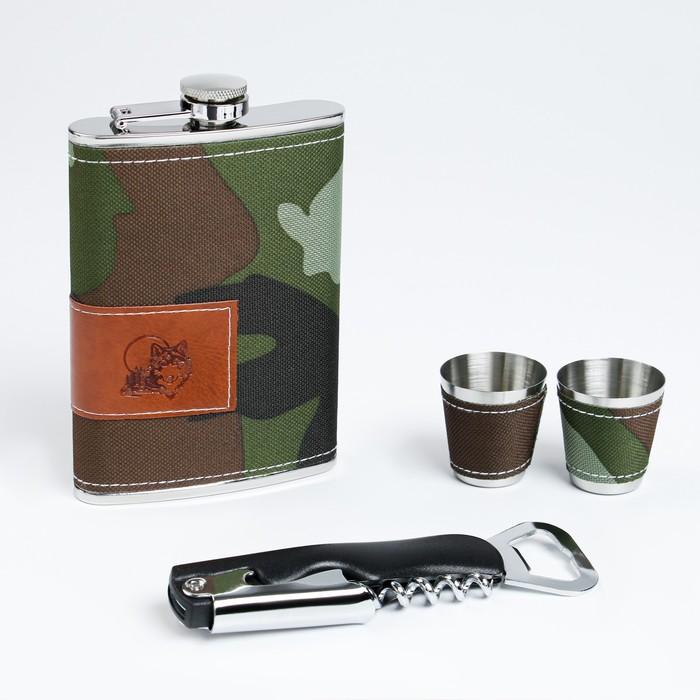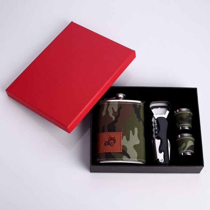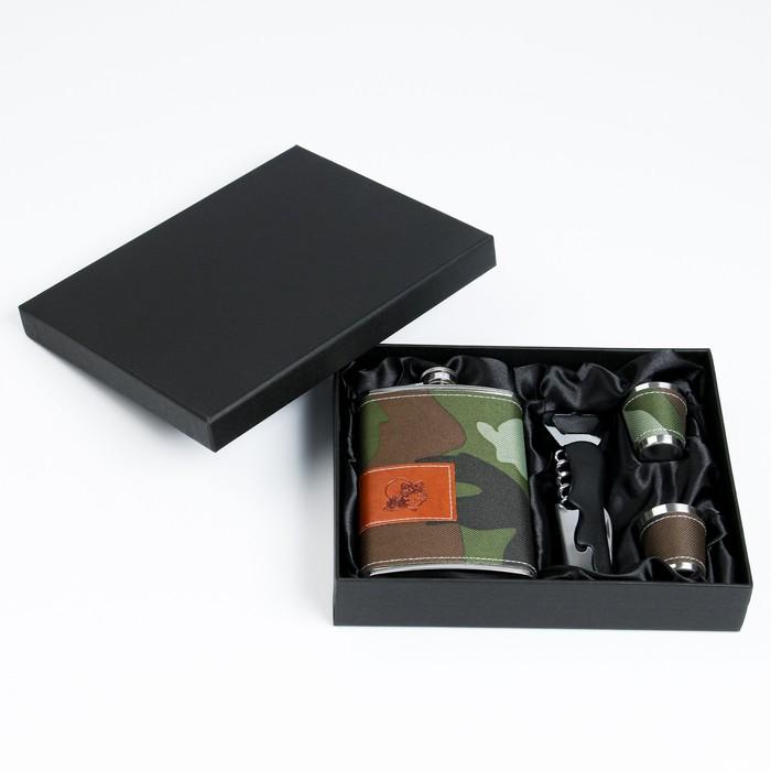Подарочный набор 4 в 1 "Хаки": фляжка 270 мл, нож сомелье, 2 рюмки, 17х23 см, микс