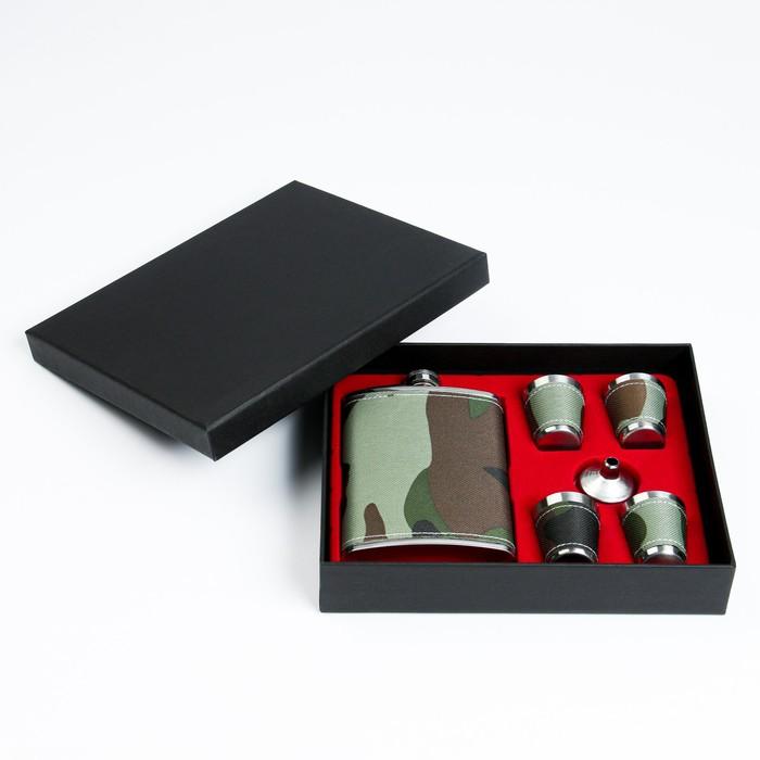 Подарочный набор "Камуфляж" 6 в 1: фляжка 240 мл, 4 рюмки, воронка