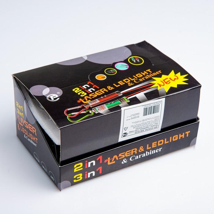 Фонарь-лазер ручной, с карабином, 2 LED, 7 х 1.5 см, микс