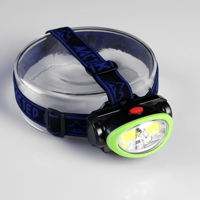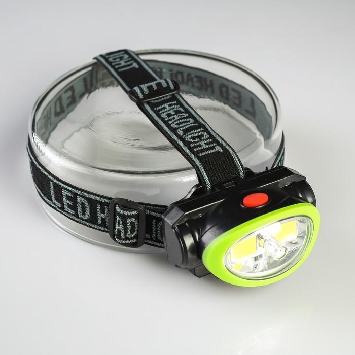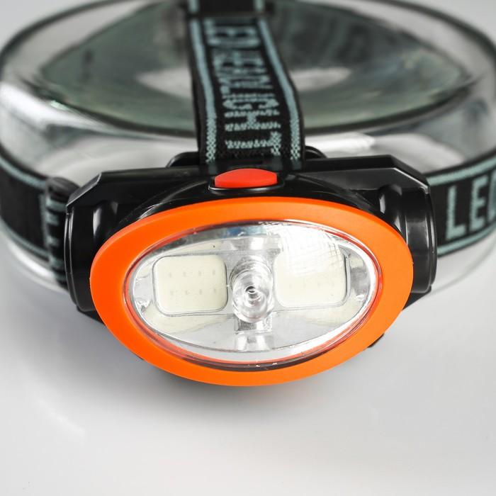 Фонарь налобный, 5 Вт, 1200 мАч, 120 лм, 2 режима, лазер, 5 х 6.5 см, микс
