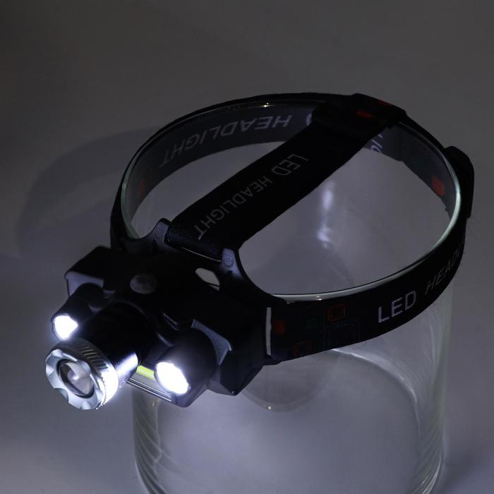 Фонарь налобный аккумуляторный 7 Вт, T6 и COB, 1200 мАч, 200 лм, 5 режимов