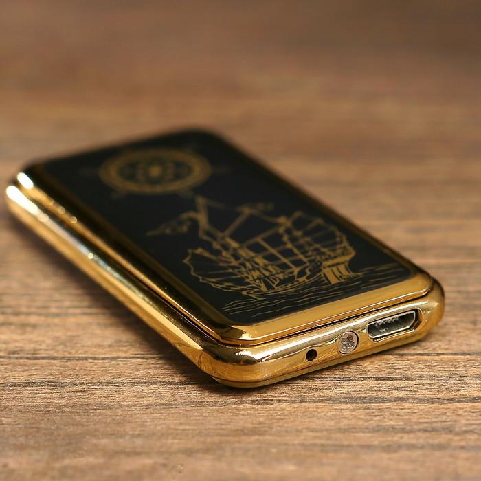 Зажигалка электронная "Корабль", USB, спираль, слайдер, чёрная, 7.5х12 см