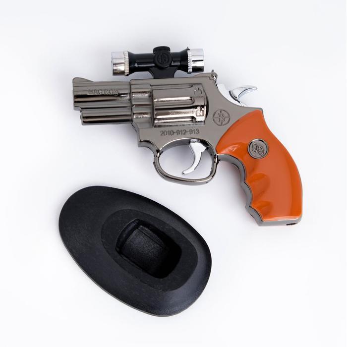 Зажигалка газовая "Револьвер с прицелом", серебро, привлечёт внимание окружающих и станет свидетельством превосходного вкуса своего хозяина. Отметим, что такая модель пользуется большим спросом даже у некурящих людей. А всё потому, что зажигалка — самый простой способ добычи огня всегда и везде.