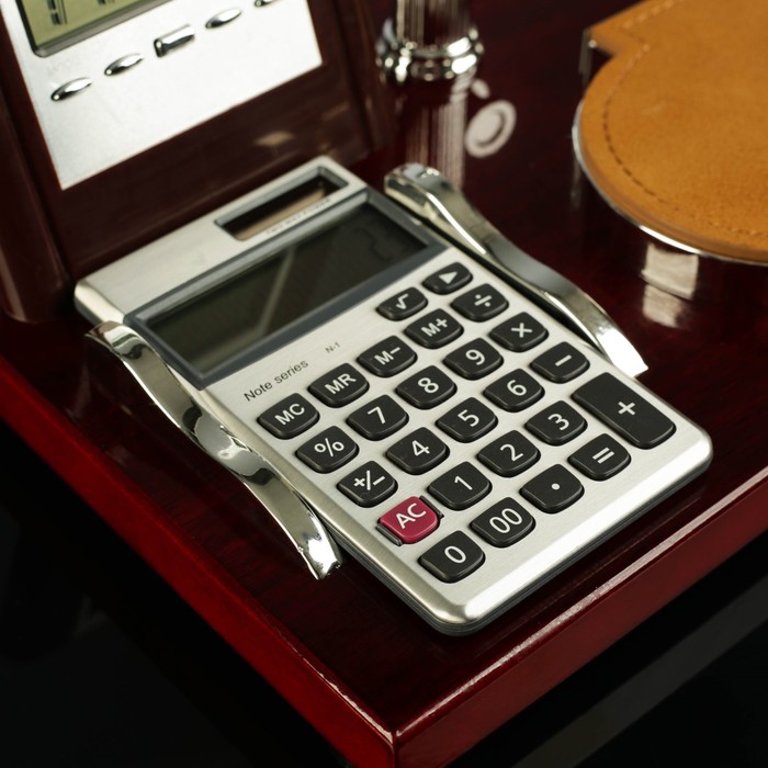 Набор настольный 4в1 (блок д/бумаг, калькулятор, визитница, часы)