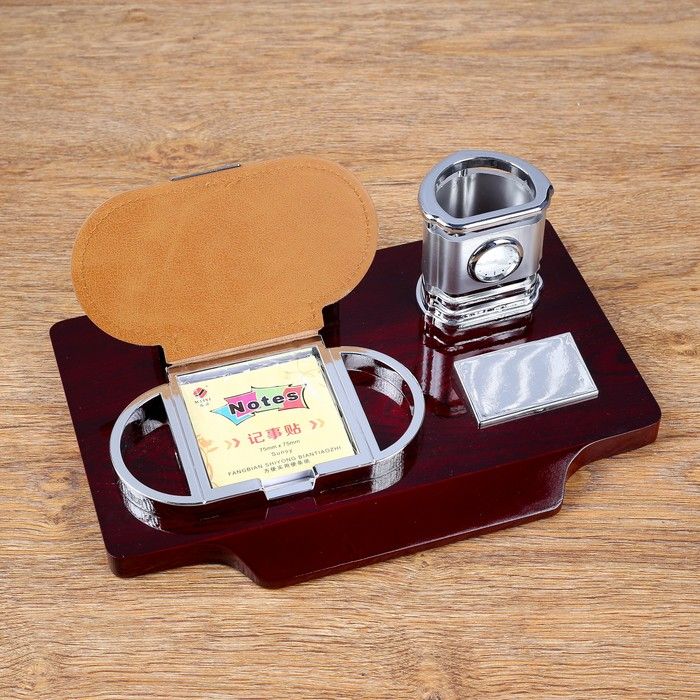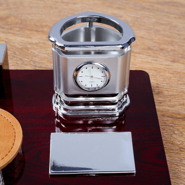 Набор настольный 4в1 (карандашница с часами, блок для бумаги, визитница) 30*20*10см