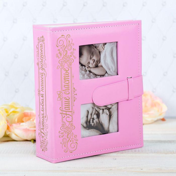 Фотоальбом на 200 фото с 2 местами под фото на обложке "Наше счастье", экокожа