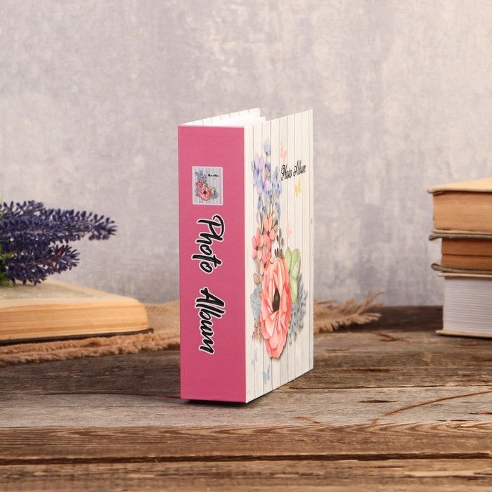 Фотоальбом на 40 фото 10х15 см "Цветы на досках" в коробке с зол.обводкой МИКС 17х14х5 см