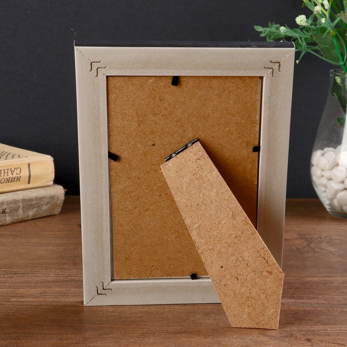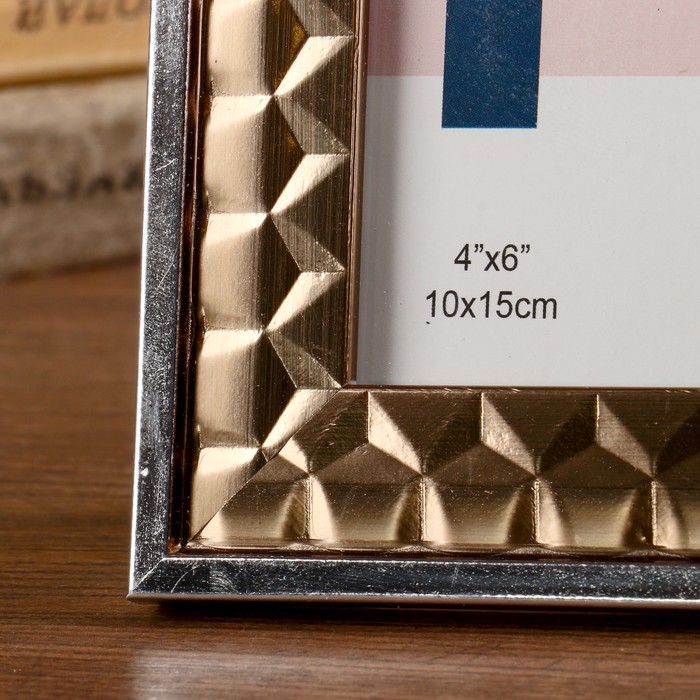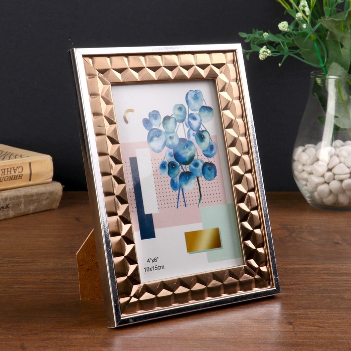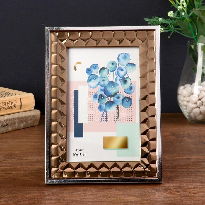 Фоторамка пластик 10х15 см "Бронзовые 3D треугольники с серебр.полосой" 19х14х1,3 см
