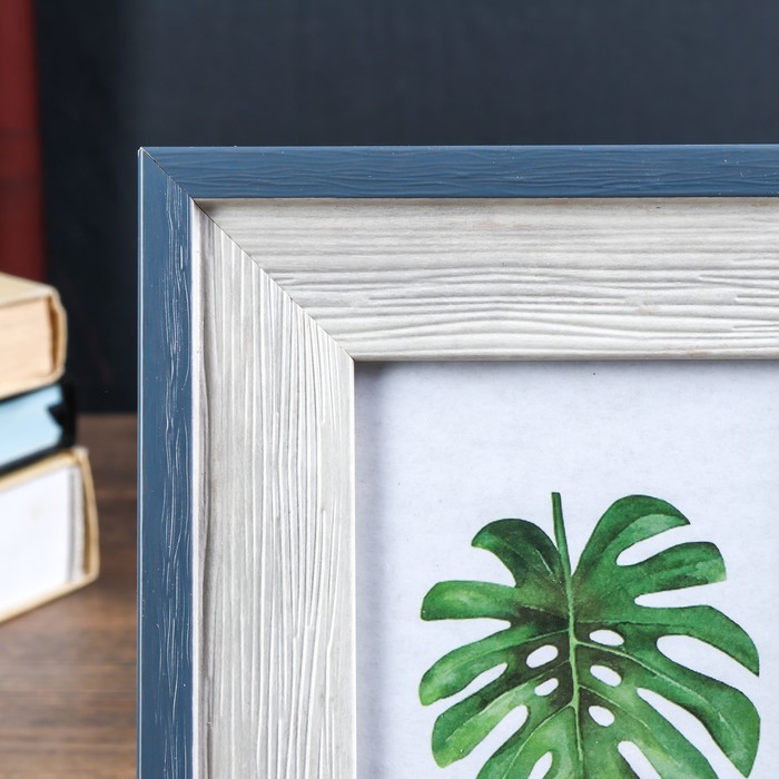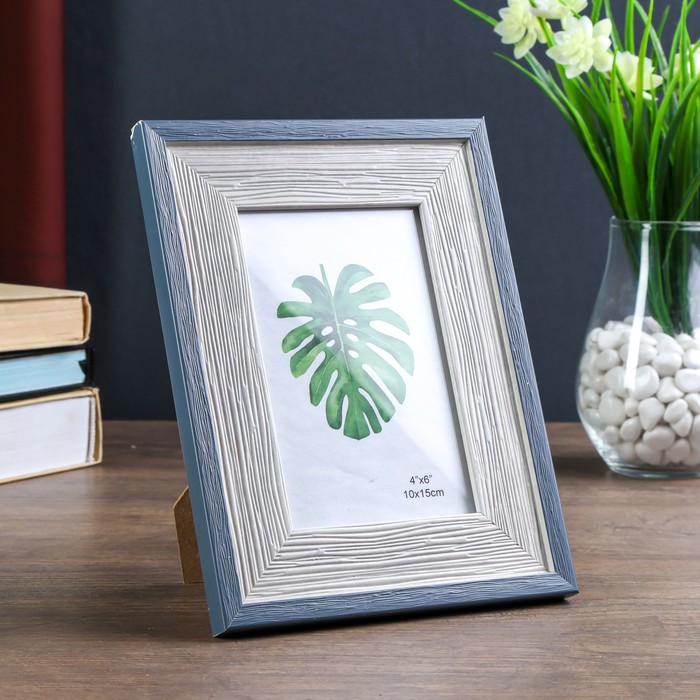 Фоторамка пластик 10х15 см "Феликс" белая с синим обрамлением 21,3х16,3 см