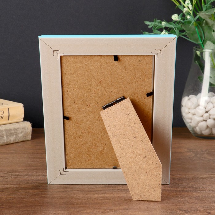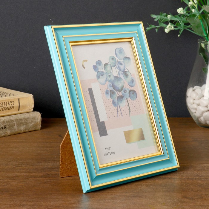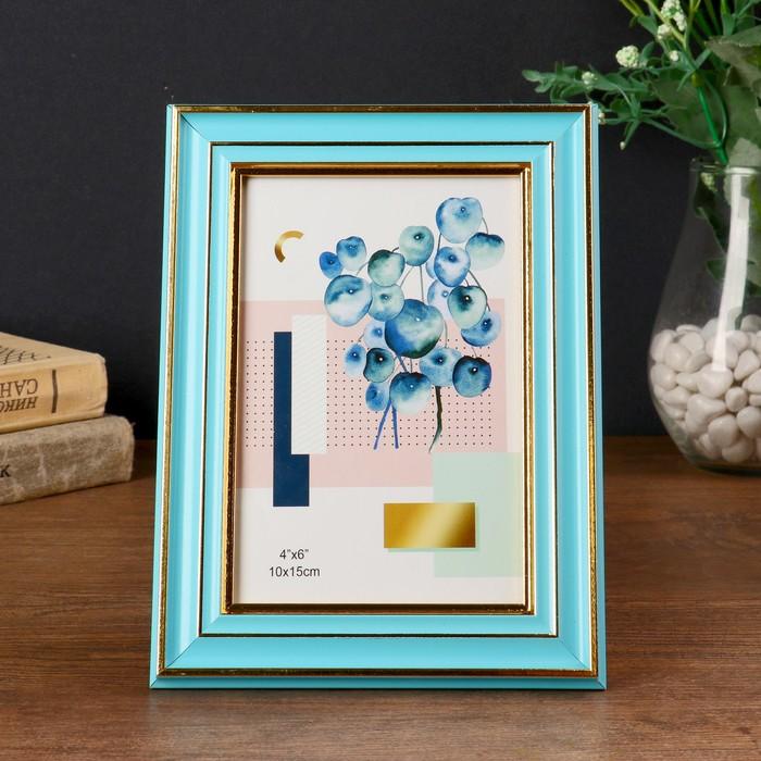 Фоторамка пластик 10х15 см "Голубая с тремя золотыми полосами" 19,3х14,3х1,2 см