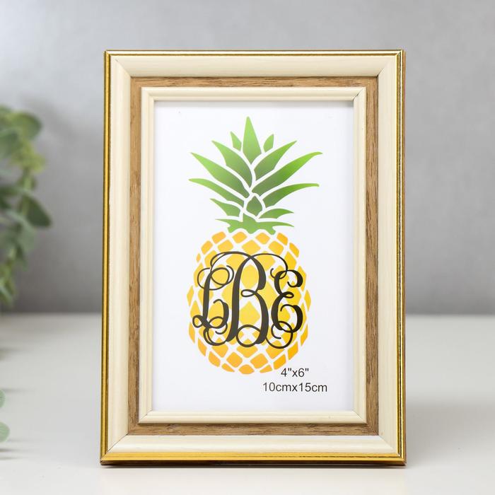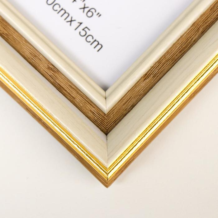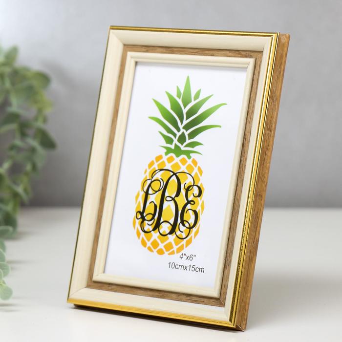 Фоторамка пластик 10х15 см "Офелия" беж с золотой полосой 19х14 см