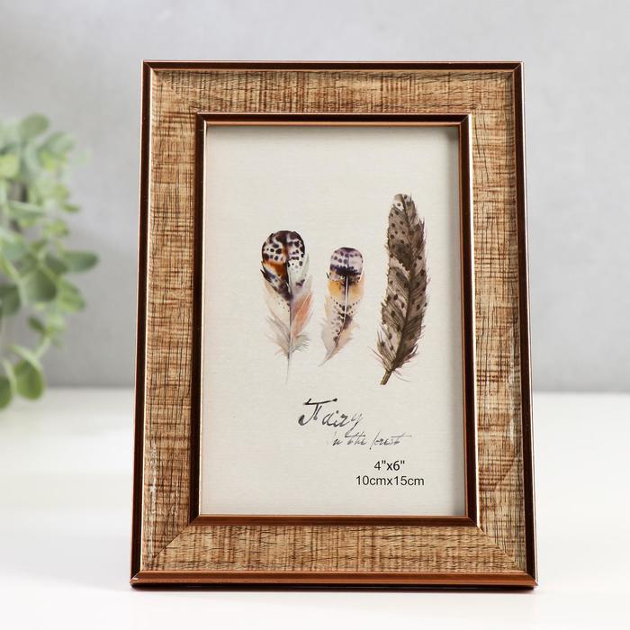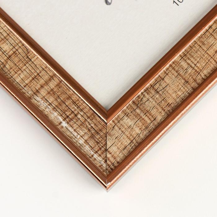 Фоторамка пластик 10х15 см "Рисунок древесины" с медной обводкой 18,5х13,5 см