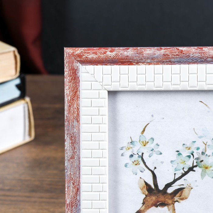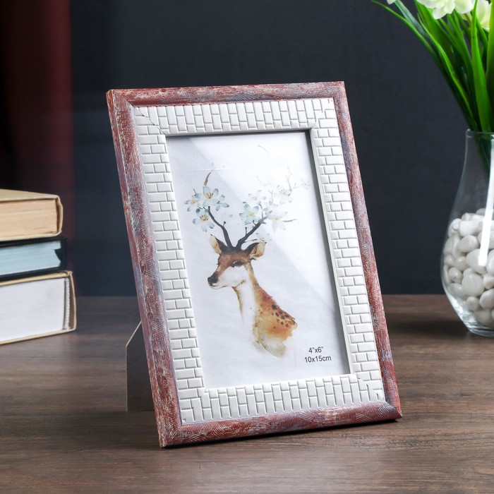 Фоторамка пластик 10х15 см "Шарль" кремовые кирпичики с розовым 19,5х14 см
