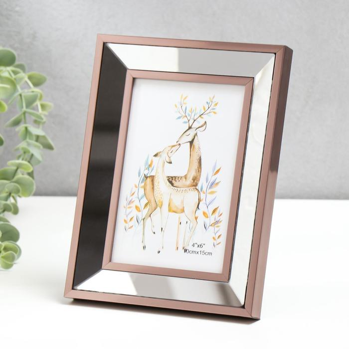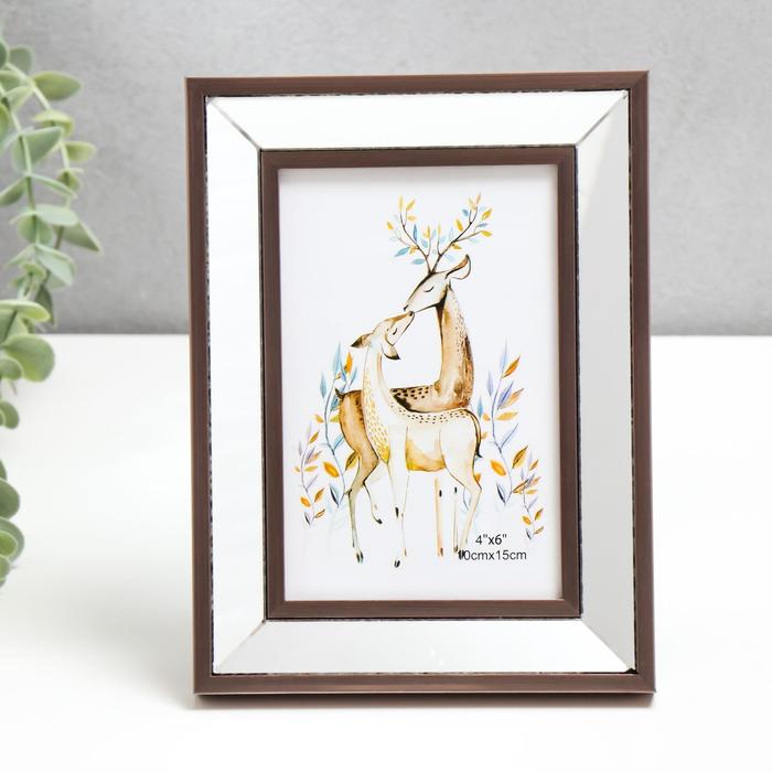 Фоторамка пластик 10х15 см "Зеркало с тёмно серебряной обводкой" 20х15,4 см