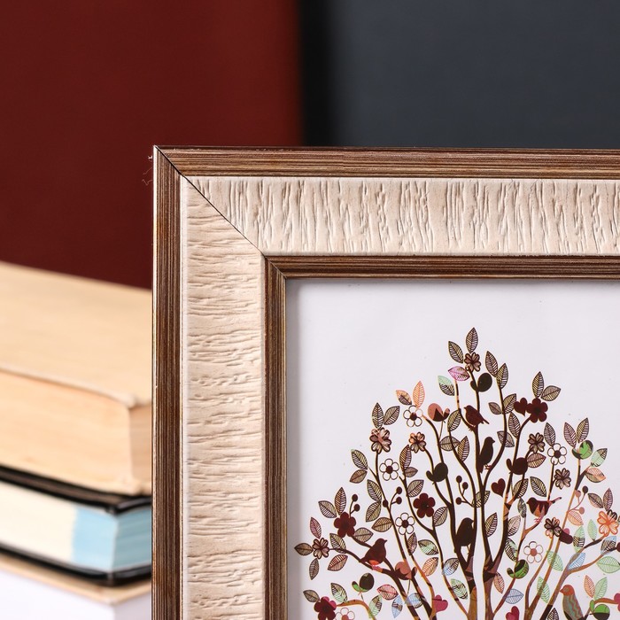 Фоторамка пластик 10х15 см "Жатая бумага" песочная с золотым обрамлением 19х14 см