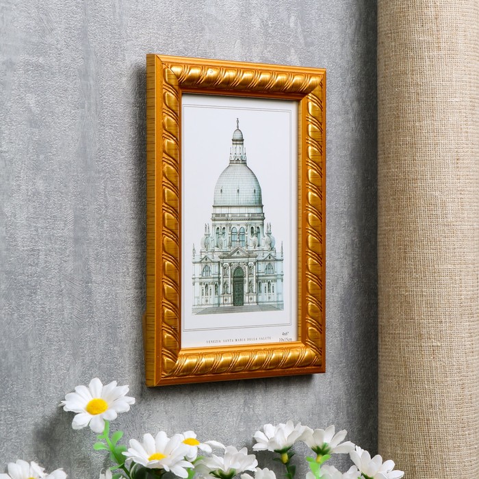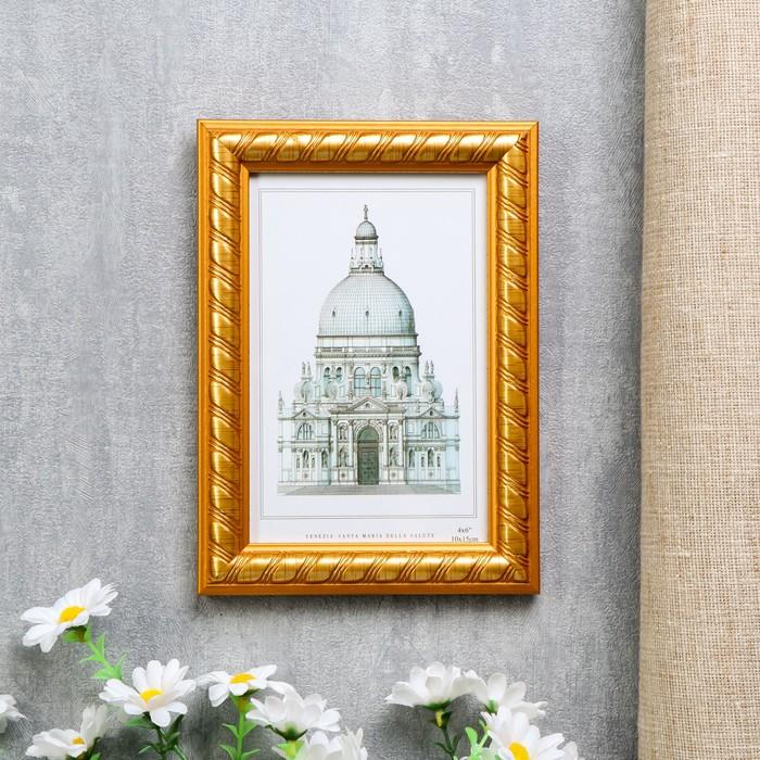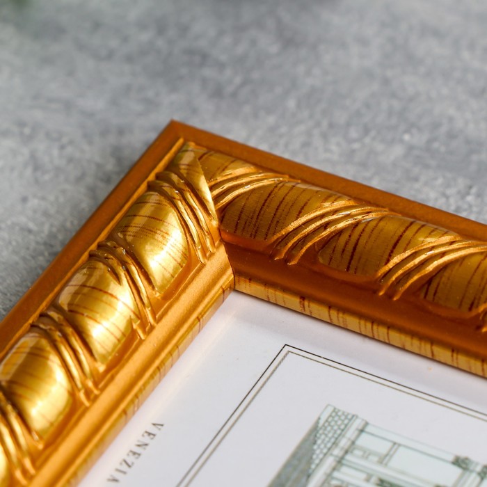 Фоторамка пластик 10х15 см "Золотые полосы на карамельном" 18х13х1 см