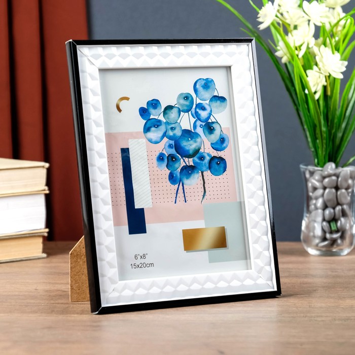 Фоторамка пластик 15х20 см "Белые 3D ромбы с чёрной полосой" 23,8х18,8х1,3 см