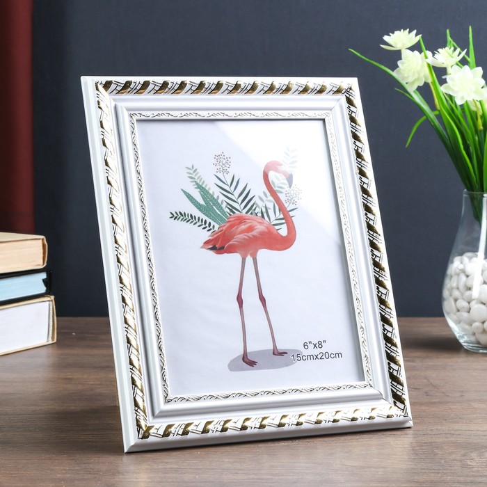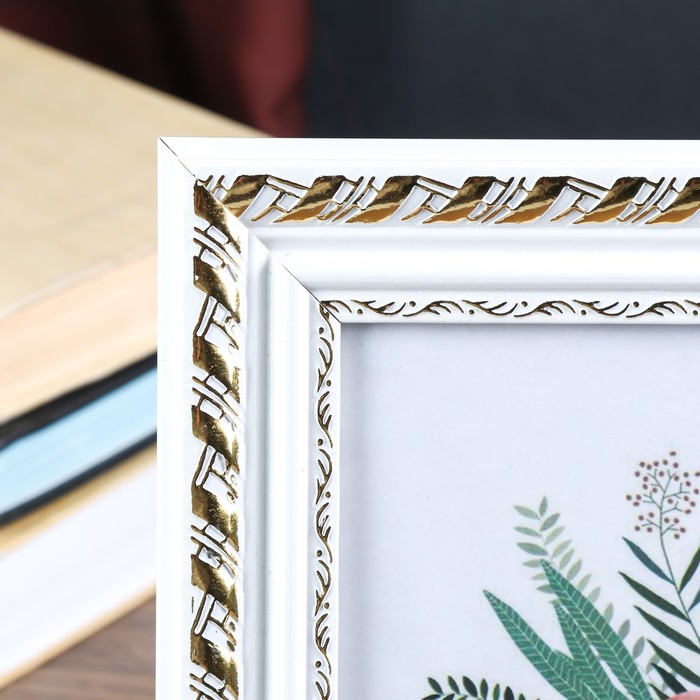 Фоторамка пластик 15х20 см "Фредерик" золотая спираль на белом 24,2х19,2 см