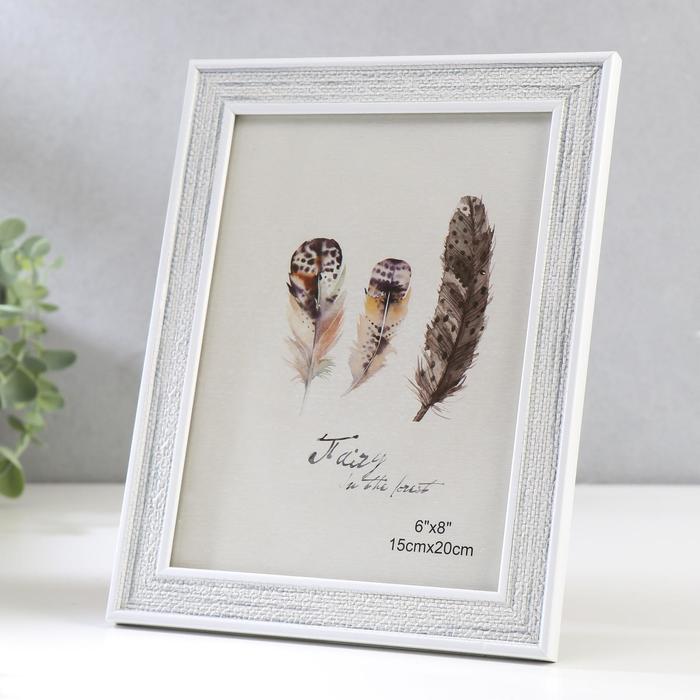 Фоторамка пластик 15х20 см "Плетение" серая с белой обводкой 23,5х18,5 см