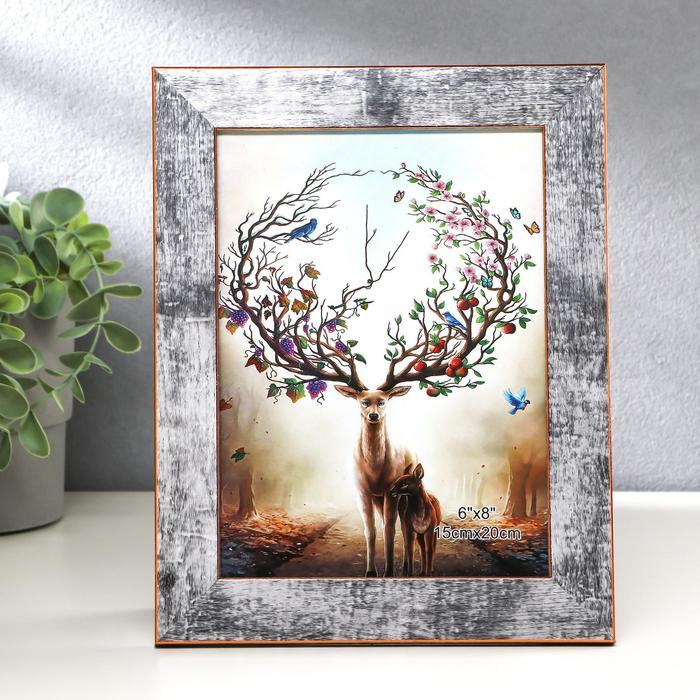 Фоторамка пластик 15х20 см "Серо-синий с золотым обрамлением" 24х19 см